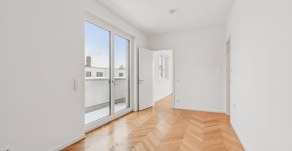 Die Wohnung befindet sich im obersten Geschoss und beeindruckt durch ihre lichtdurchflutete Atmosphäre. Großzügige Fensterflächen setzen die Räume eindrucksvoll in Szene und verleihen ihnen eine offene, repräsentative Wirkung.